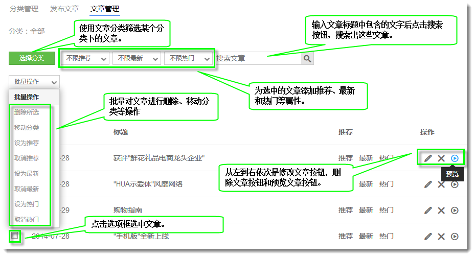 4. 发布文章后管理员可在文章管理页面中查找和修改已经发布的文章。