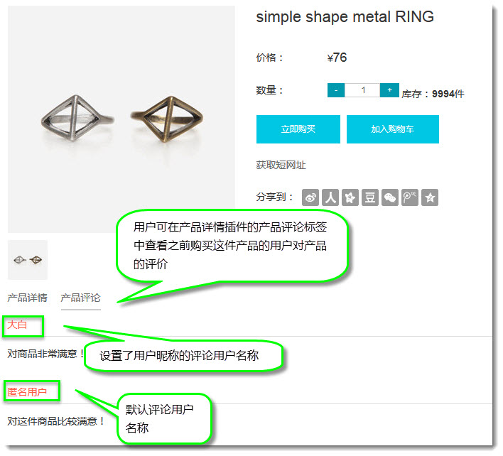 8. 其他用户在浏览这件产品时,能够在产品详情页面上看到其他购买过这件产品的用户对产品的评论。