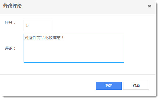 6. 在弹出的评价窗口中可以对订单产品评星以及发布评论。如果当前订单中包含多件产品,用户对第一件产品做出评星和评论后,点击提交评价按钮,会提交当前产品的评论并接着出现下一件产品的评论窗口。这样用户可以对包含在订单中的每一件产品做出购买评论。