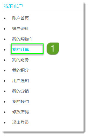 4. 网站用户在购买产品后,管理员对订单状态做出已完成的设置,网站用户可以在自己的账户中心打开我的订单。