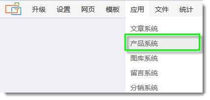 1. 在突唯阿网站管理后台顶部菜单,应用 > 产品系统中打开产品系统。