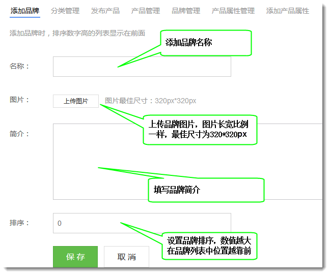 2. 在添加品牌页面上添加网站产品的品牌信息。