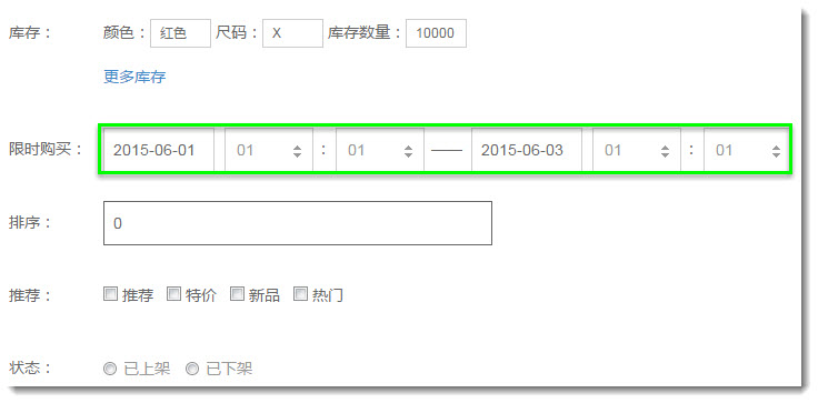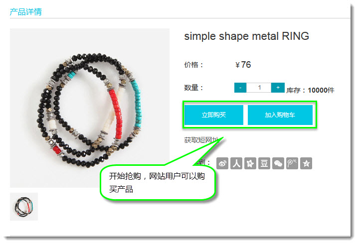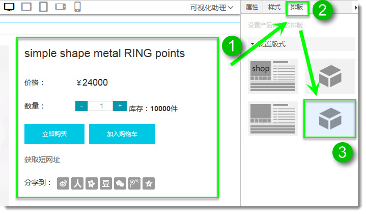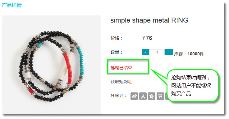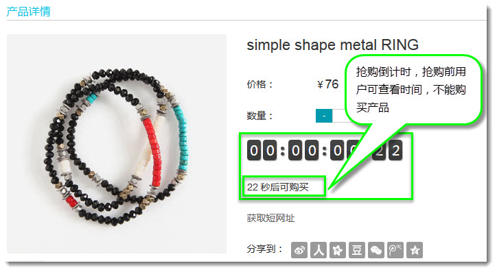 1. 在发布产品页面限时购买设置项后添加时间段后,网站管理员可以在产品详情页面上添加产品限时抢购功能。2. 需要注意的是:设置结束时间后,实际时间超过产品设置的结束时间,在产品详情页面上会显示产品已售完提示。如果没有设置结束时间,则用户可以从开始购买产品时间起,一直购买产品。3. 网站管理员在页面设置界面上选择产品详情插件,然后在右侧排版面板上选择第4个排版样式。4. 用户就能在页面上看到倒计时功能。5. 抢购开始后,用户可以打开产品详情页面购买产品。