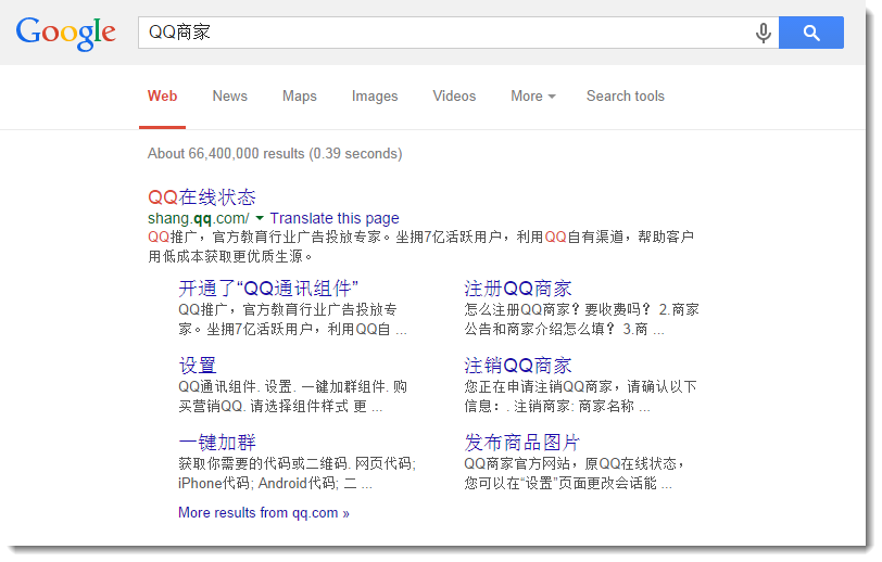 首先通过搜索引擎如谷歌,百度等搜索,然后打开QQ商家的网站。