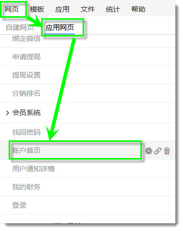 a. 在网站管理后台顶部菜单,网页 > 应用网页 > 会员系统中打开账户首页。
