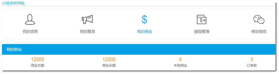 佣金余额:指的是佣金总额减去当前分销会员已经提现的金额。