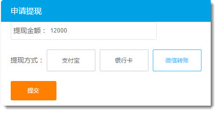 b. 然后在申请提现页面选择提现方式和提现金额。