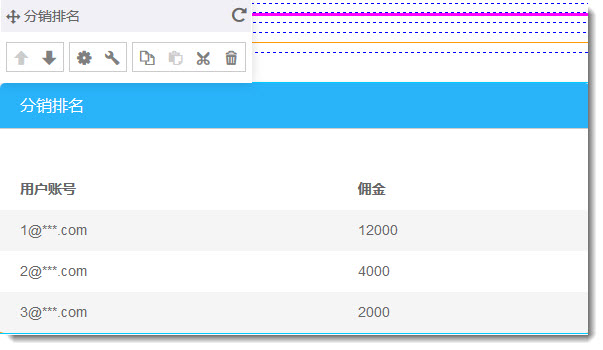 管理员还可以在网页中添加分销排名插件,让网站用户查看网站中的分销用户的排名。