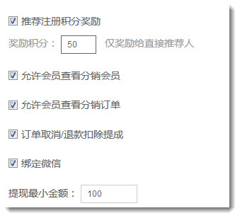b. 设置提现最小金额后,分销用户的提成佣金需要大于设置的最小提现金额才能提现。
