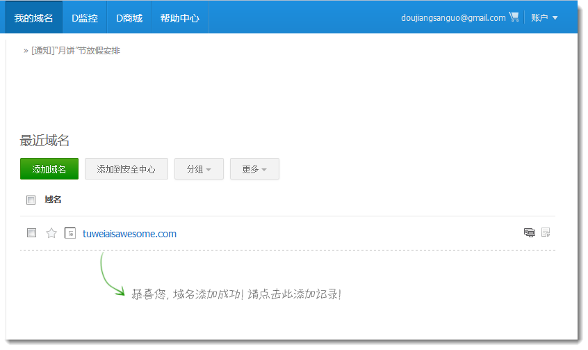 1. 先去DNSPOD网站上注册一个帐号并登录。